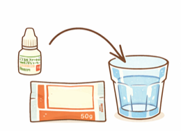 おいしくない下剤を多量に飲む必要がなく、下剤とお好みの飲料を少量ずつ飲めるため負担が軽減されています。